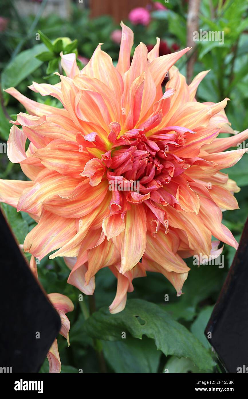 Dahlia Labyrinth Decorative Dahlia Group 5 Grosse Hellorange Bluten Mit Mittelrosa Blutenblattern Ausgestellte Spitze Blutenblatter September England Uk Stockfotografie Alamy
